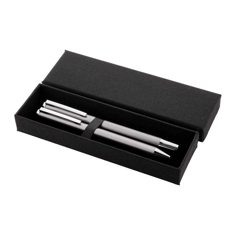 Sada kovového rollera a guľôčkového pera s otočným mechanizmom a klipom. Čierny atrament. Dodávané v polstrovanej darčekovej krabičke. o12 x 132 mm | Krabička: 170 x 70 x 30 mm