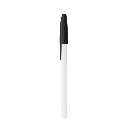 Plastové guľôčkové pero s modrou náplňou. Toto guľôčkové pero sa vďaka svojmu štíhlemu tvaru dokonale hodí do slučiek poznámkových blokov.