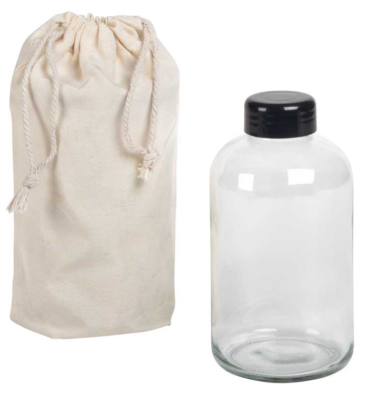 Glass bottle DRINK HEALTHY: with screw lid, in a cotton bag, capacity: approx. 550 ml
