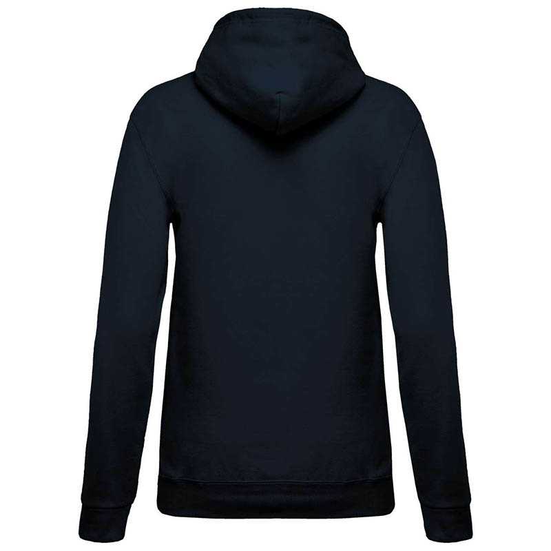 80 % česaná bavlna/20 % polyester (oxfordská sivá: 76 % česaná bavlna/21 % polyester/3 % viskóza).Kartáčovaný flís.Klokanie vrecko s prístupom pre slúchadlá.Rebrované manžety a pás.Kontrastne lemovaná kapucňa so sťahovacou šnúrkou.Certifikát STANDARD 100 podľa OEKO-TEX®N° CQ1007/7, IFTH.