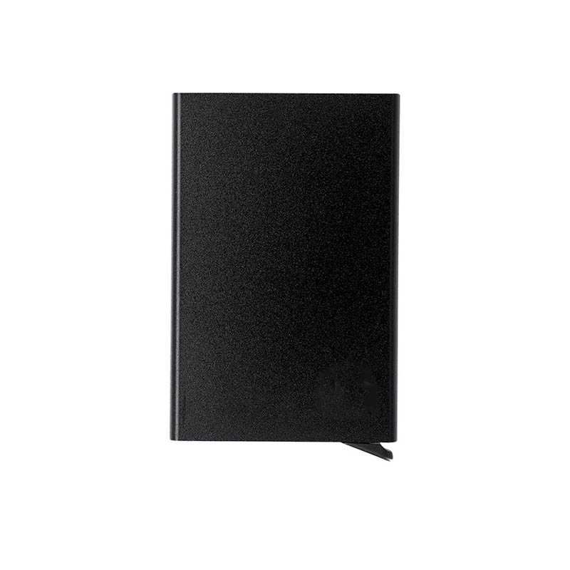 NOVINKA 2025. Cardholder made from recycled aluminum. Capacity for up to 10 cards, with an ingenious sliding mechanism for easy access to the cards. RFID (Radio Frequency Identification) security technology that keeps your identity transmission devices secure. RFID and Recycled Aluminum labels.Recycled aluminum is a material with almost infinite recycling possibilities, without losing its original properties and consuming less energy in the process.GRS certification (Global Recycled Standard), which guarantees the recycled origin of the material used to manufacture the product.
