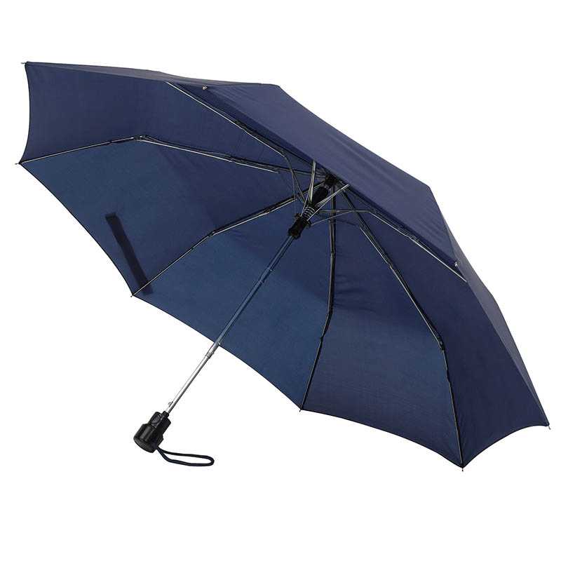 Pongee, foldable and automatic storm umbrella with eight panels. Metal and fibreglass frame and plastic handle. Including sleeve.