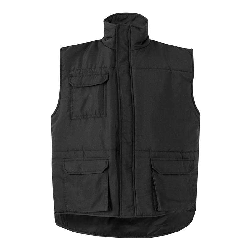 Padded, water-resistant polyester vest with reflective piping. Sizes: S/M/L/XL/XXL