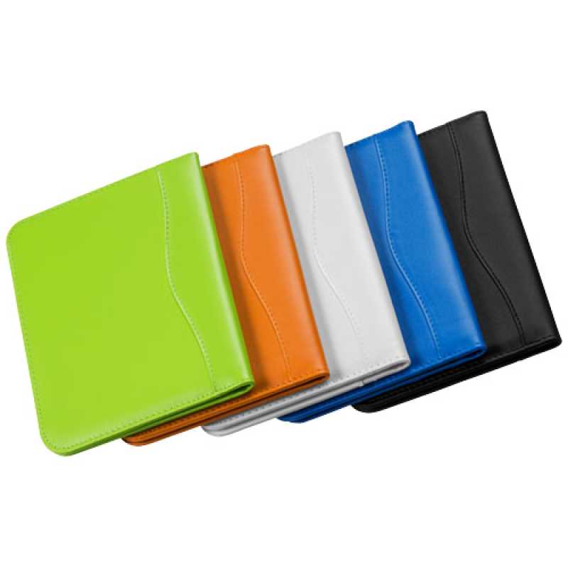 Zložka formátu A4 z PU a 800D s vnútorným priestorom z mikrovlákna. s uzatváraním na elastickú pásku. Obsahuje blok so 40 linajkovými stranami, 3 vrecká a držiak na pero (pero nie je súčasťou balenia). 245 x 315 x 15 mm
