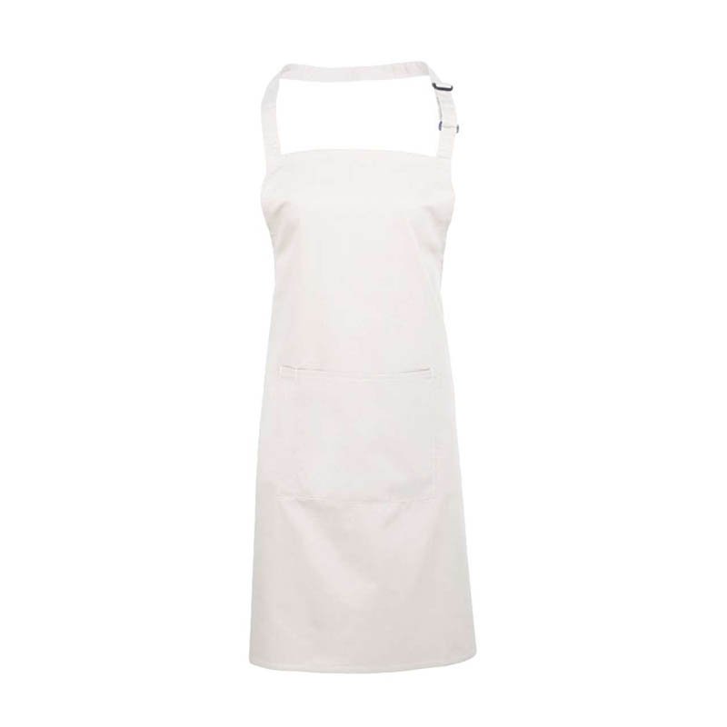 Denim Multi-Pocket Bib Apron.Made of pre-washed 100% cotton denim fabric for a soft and comfortable feel.Thick camel-coloured side straps for optimal waist adjustment, tied with a knot and adjustable neck straps with metal button fastening for a better fit.A front chest pocket to showcase the branding and a wide compartmentalised waist pocket, including pen holder, for convenient storage.Hem-stitched contour seams and high-wear reinforcements with bartacks to for added strength and durability.Suitable marking methods: screen printing, embroidery, transfer printing, vinyl application.Ideal as hospitality clothing, promotional clothing and for a personalised gift.