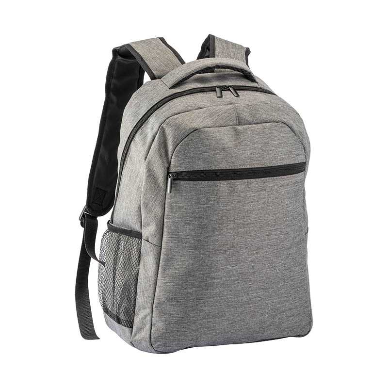 Laptop backpack(15") in polyester with melange effect.Padded notebook compartment.Frontal pocket with zipper, padded backrest and shoulder straps