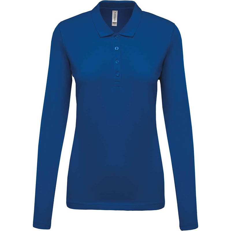 WOMEN's long-sleeve Polo. Piqué Fabric. 100% RingSpun pre-shrunk Cotton. 210 g/m2 Placket with 3 buttons. Shoulder-to-shoulder reinforced neck tape to avoid deformation 1x1 rib kni