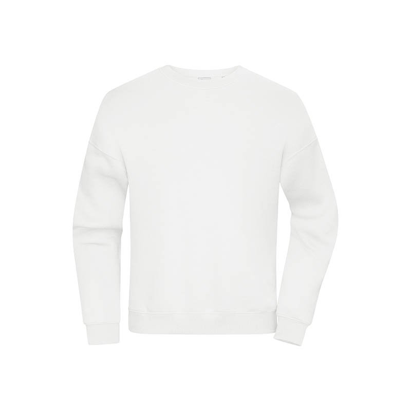 85 % organická bavlna/15 % recyklovaný polyester.Prstencovo spriadaná česaná bavlna.Rovný strih.3-vrstvový kartáčovaný flís, LSF (Low Shrinkage Fleece: predzrazený flís).1/2 kruhu vzadu.1 x 1 rebrovaný výstrih, spodný okraj a manžety.Dvojité prešívanie na manžetách, prieramkoch a spodnom okraji.Jednoduché vrchné prešívanie vo výstrihu.Podlepený výstrih vnútri na zadnej strane.