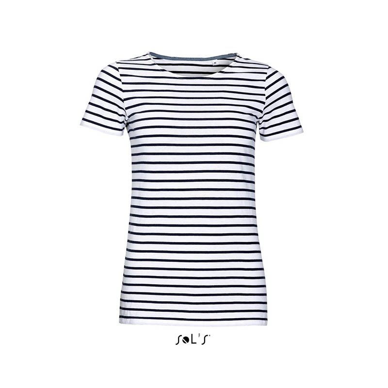 Modern style round neck t-shirt for ladies. Slub tricot fabric made from ecologically grown cotton. Colors: 100 white, 120 grey melange, 474 dusty pink, 514 summer blue, 600 navy, 704 moss green, 900 black 100% Organic Cotton 160 g/m2 XS–XXL