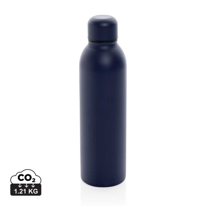 NOVINKA 2025. Táto 600ml fľaša na vodu sa vyznačuje jedinečným dvojfarebným štýlovým designom. Dvojstenná vákuová fľaša z recyklovanej nerezovej ocele udrží nápoje chladené až 15 hodín alebo teplé až 5 hodín. Fľaša na vodu sa zmestí do väčšiny štandardných držiakov na nápoje v aute. Vyrobená z certifikovaných recyklovaných materiálov podľa štandardu RCS (Recycled Claim Standard), čo zaisťuje plne certifikovaný dodávateľský reťazec recyklovaných materiálov. Recyklovaný obsah podľa celkovej váhy produktu: 95%. Bez BPA. Zahŕňa darčekové balenie z kraftového papiera s certifikáciou FSC®.