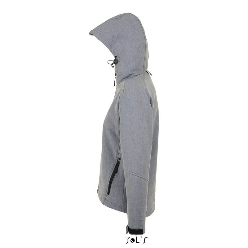 3vrstvový softshell s membránou, ľakho vypasovaný strih, celozapínací reverzný špirálový zips, kapucňa a dolný lem na stiahnutie elastickou šnúrkou, lemy rukávov nastaviteľné suchým zipsom, lištové vrecká s reverzným špirálovým zipsom, náprsné vrecko so s