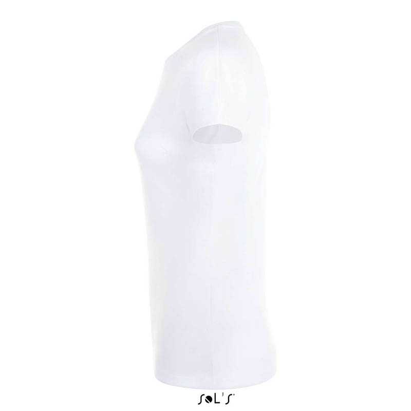 50 % polyester, 25 % viskóza, 25 % bavlna.Štandardný strih.Bočné švy.Len štítok s veľkosťou, na jednoduchú zmenu značky – biela farba pre Dámy.Trojzložková tkanina pre štýl a pohodlie.Povrch vynikajúci na potlač alebo výšivku.Podlepený golier.Rebrovaný okrúhly výstrih.Detail prešívania dvojitým prešívaním.Tmavé farby perte oddelene .