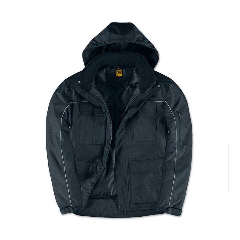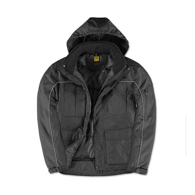 HIGHLY FUNCTIONAL HEAVY PRO JACKET WITH ERGONOMIC CONCEALED HOOD 1.Ergonomic concealed hood 2. 12 multi-function pockets 3.Longer back for freedom of movement + warmth + protection when bending or kneeling 4.Reflective piping at front and back panels for enhanced visibility and safety 5.Rip-stop outer shell ensures increased resistance to abrasion and tears 6.1 external smartphone pocket with velcro fastening 7.3 extra outer pencil pockets 8.2 double entry front pockets with side fleece handwarmer access 9. 1 inside patched wallet pocket 10. 1 arm pocket with zip closure 11.Ergonomic zip pullers for easy access 12.Adjustable cuffs with velcro tabs for better fitting body shapes 13.Fabric tested for all printing techniques and embroidery. Značka:B&C. Materiál:100% polyester