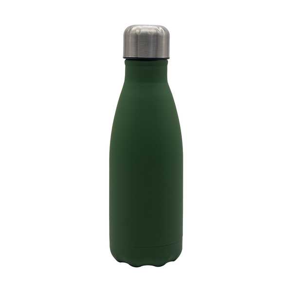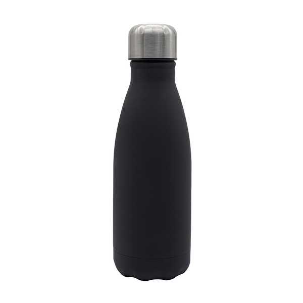 Fľaša na pitie s objemom 500 ml s pogumovaným povrchom príjemným na dotyk, netečúca. Stena fľaše vyrobená z vylepšenej ocele 18/8. Len ručné umývanie.