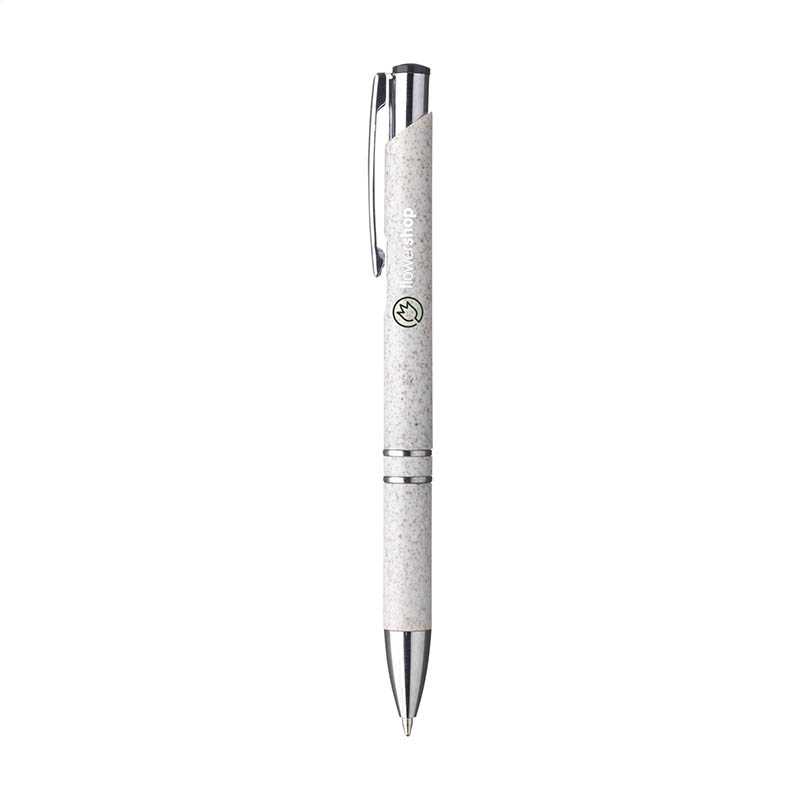 Výnimočné pero vyrobené zo zvyškov slamy pšenice. Tým je pero naozaj odolné a stáva sa ekologickou voľbou. Modrý atrament Dokumental s TC guličkou pre veľmi príjemné písanie priemerne 1 200m textu. Zloženie: 40 % pšeničná slama / 60 % ABS.