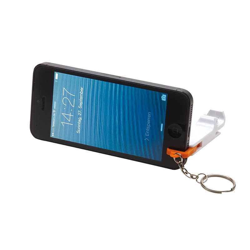 Key chain DOUBLE OPEN: with pull-out holder for a smartphone, integrated bottle opener, and key ring