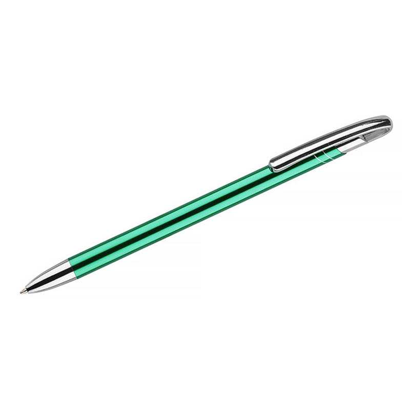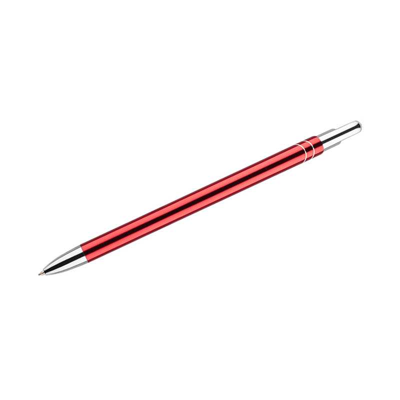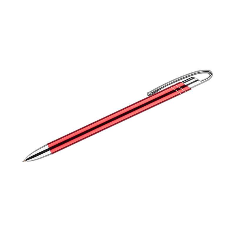 Kovové guľôčkové pero s modrou náplňou a štýlovou rukoväťou.