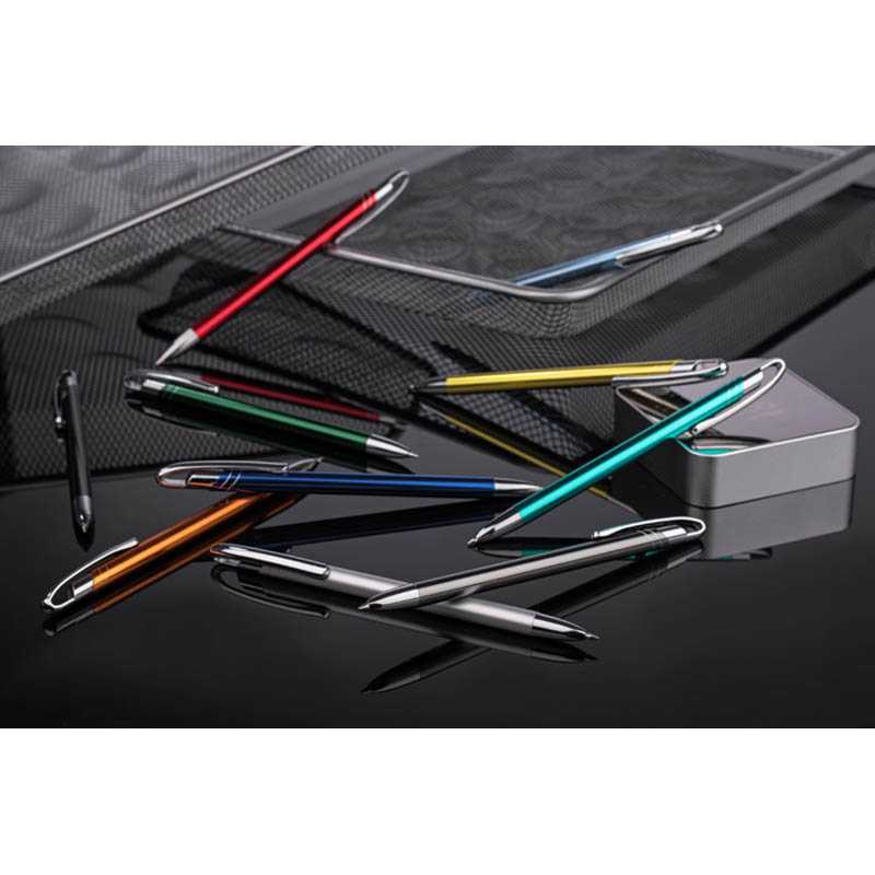 Aluminum push button ball pen with colored touch screen and laser engraved logo