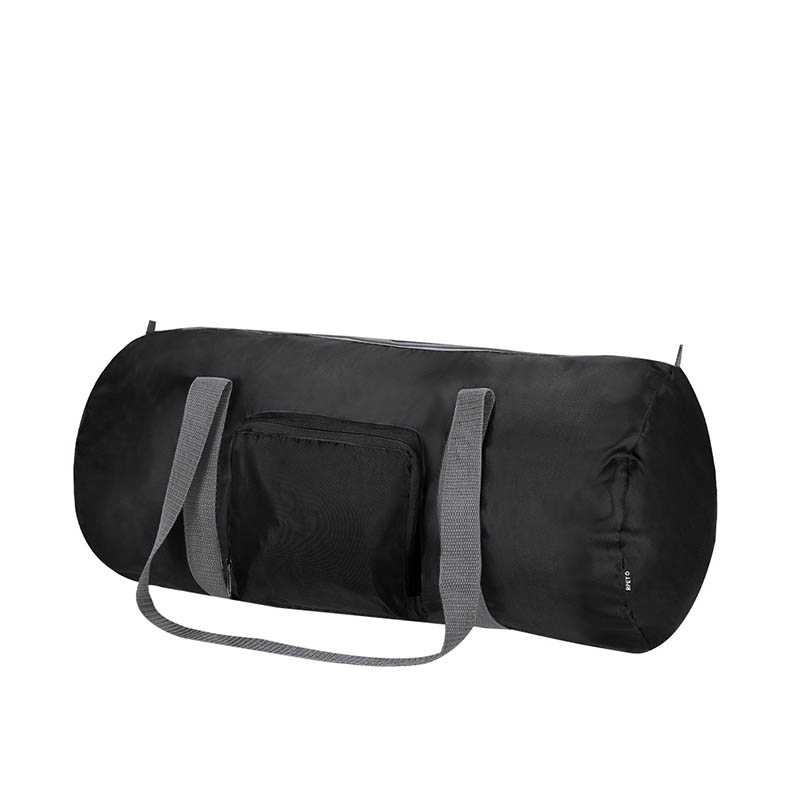 NOVINKA 2025. rPET 210D foldable duffle bag. One large zippered compartment and short carrying handles.