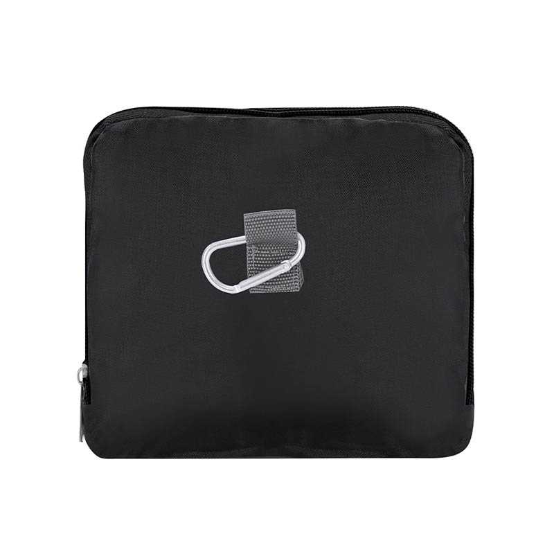 NOVINKA 2025. Folding bag made of 290T RPET. With a zipper closure and accessories in gray and black colors. Includes a carabiner for easy transport. Includes RPET label.RPET material is made from recycled plastic to promote the reuse of plastic waste and help the planet's sustainability.