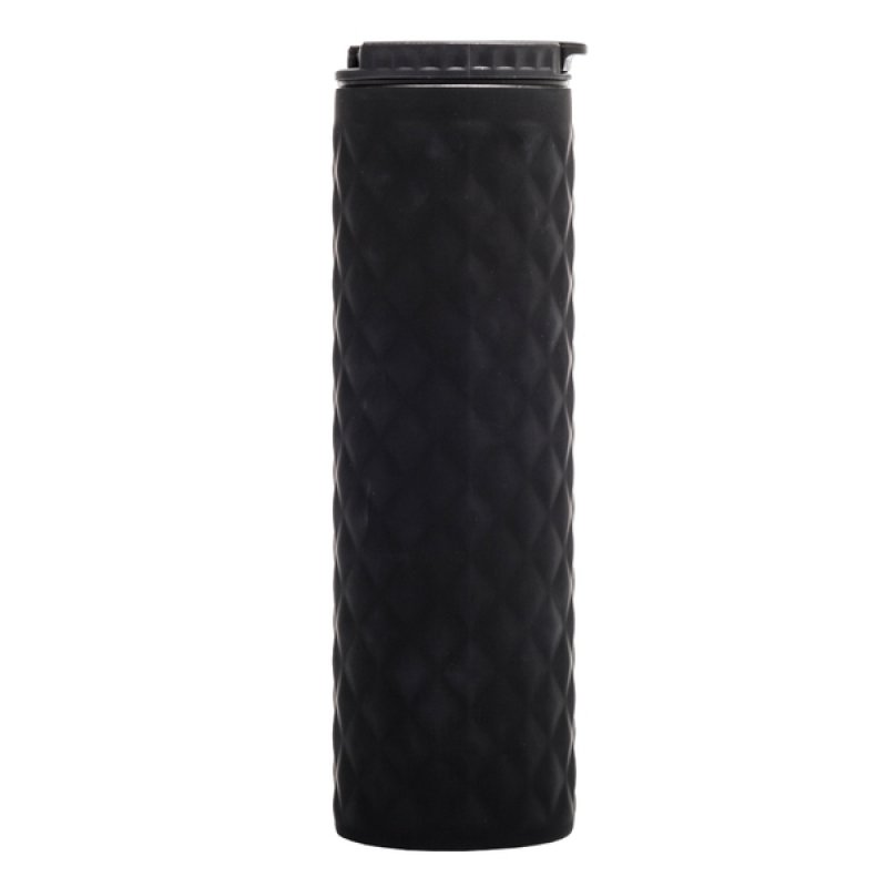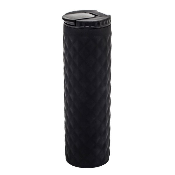 Termohrnček s objemom 450 ml s dvojitou stenou z nerezovej ocele, vnútornou stenou z vylepšenej ocele 18/8 a zdvíhacím uzáverom, nepretekavý. Zdobená vonkajšia stena s lakovanou matnou úpravou. Termoizolačná schopnosť 8 h. Len ručné umývanie.