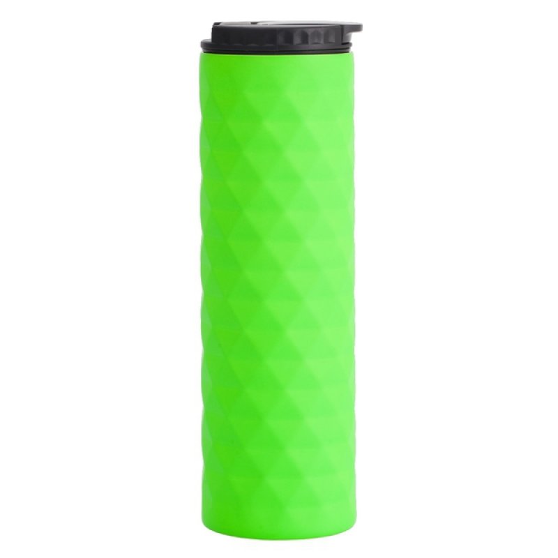 Termohrnček s objemom 450 ml s dvojitou stenou z nerezovej ocele, vnútornou stenou z vylepšenej ocele 18/8 a zdvíhacím uzáverom, nepretekavý. Zdobená vonkajšia stena s lakovanou matnou úpravou. Termoizolačná schopnosť 8 h. Len ručné umývanie.
