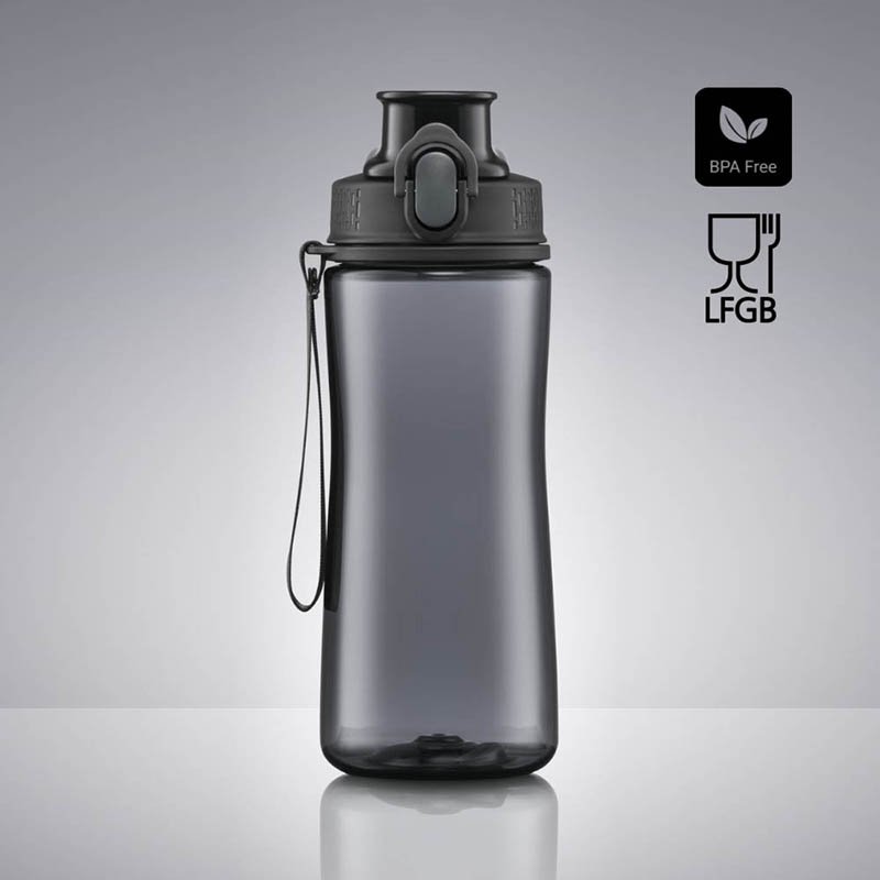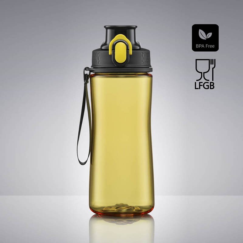 The sports drinking bottle made of Tritan has a sports closure for one-handed opening, a wrist strap, unit display, is very durable and holds a total of 500 ml.plastic, Tritan, light green, BPA free, Capacity, Dishwasher save, leak-proof, loop
