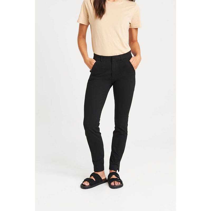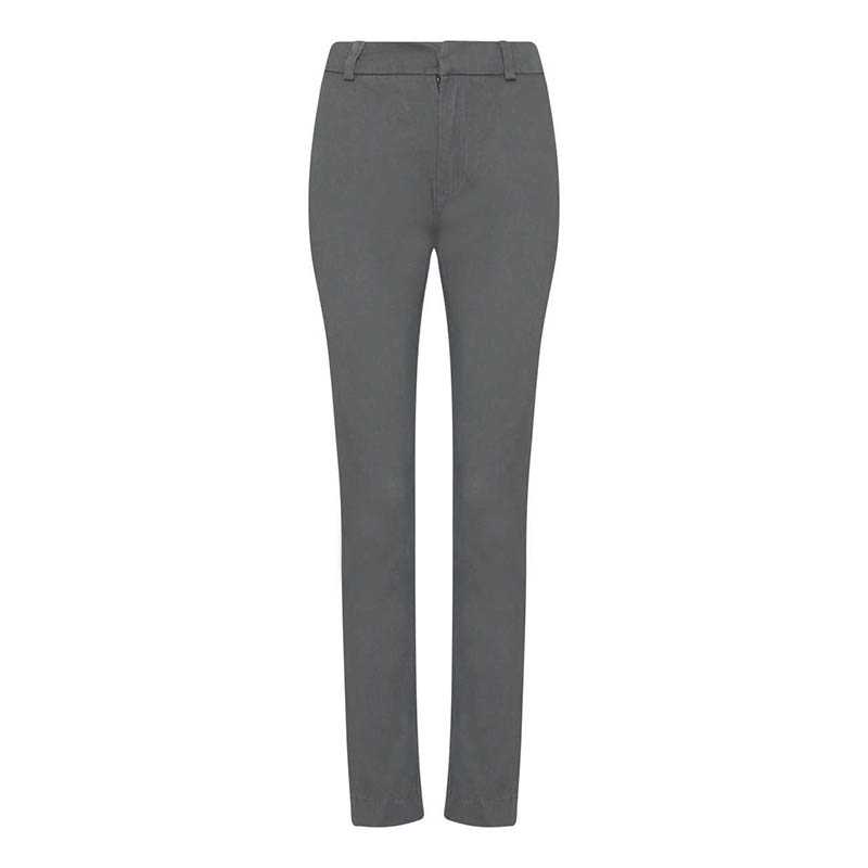 98 % bavlna/2 % elastan.Priliehavý strih.Strečový keper s brúsenou úpravou.Predné šikmé vrecká.Zadné vrecká s gombíkovým zapínaním.Rázporok na členku.Skryté zapínanie na háčik a tyč.Zapínanie na zips YKK.Látkové pútka na opasok.