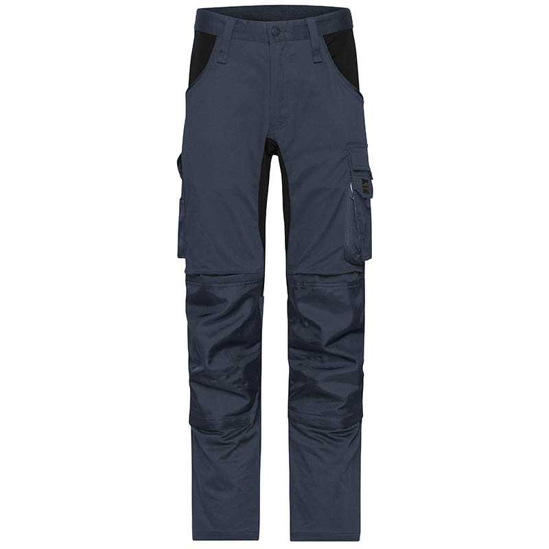 Pracovní kalhoty s elastickými doplňky ve slim střihu.Robustní a odolný mix materiálů - recyklovaný polyester a bio-bavlna s elastanem.Velmi pohodlné na nošení díky elastickým doplňkům.Poutka na opasek.Kolenní díly a některé kapsy jsou z materiálu CORDURA
