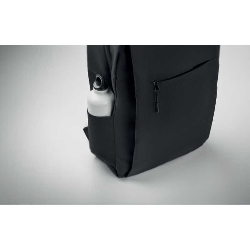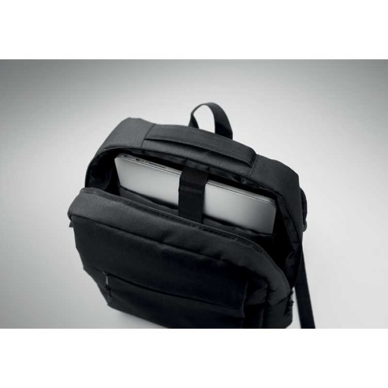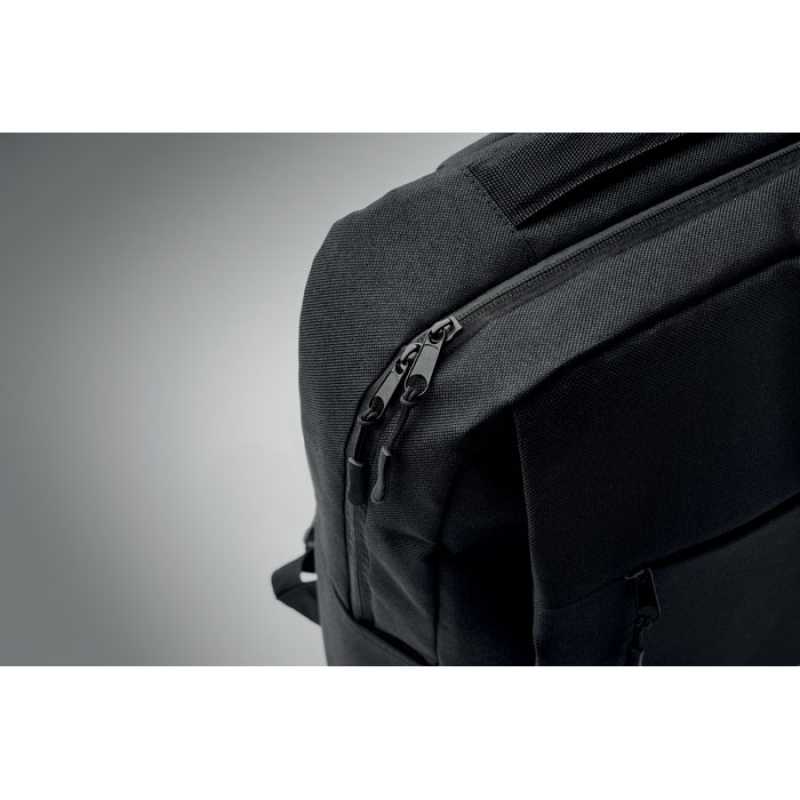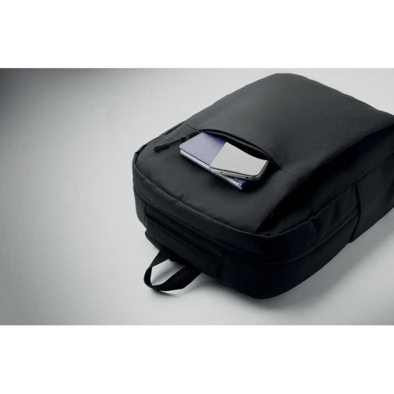 Batoh na notebook z recyklovaného polyesteru 300D a 600D s reflexnými prvkami. Má 1 hlavnú priehradku s 1 multifunkčným vreckom a vreckom na notebook do 15.6". Obsahuje 1 predné vrecko na zips, 2 bočné sieťované vrecká a gumu vpredu na prenášanie rôznych predmetov. Rukoväte a zadná časť sú polstrované. Kapacita je až 18 l. 320 x 450 x 140 mm