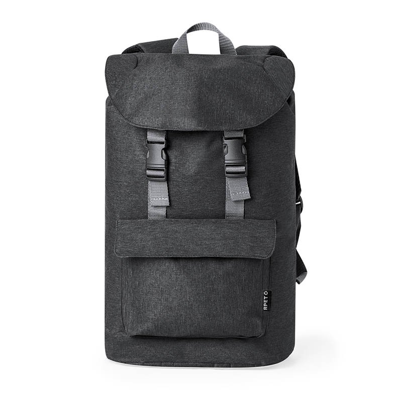 NOVINKA 2025. Backpack ROLL-TOP: made from recycled plastic (RPET), zipped front compartment, large main compartment with padded interior compartment for laptop or tablet, top can be rolled up and fastened with snap closure, grab handle, padded bottom, sh
