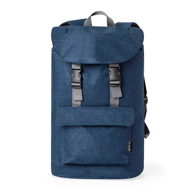 NOVINKA 2025. Backpack made of durable 600D RPET. The main pocket closes with a drawstring and has a double zippered flap, while the front pocket has a flap with velcro closure. The shoulder straps are padded and adjustable. Available in several colours and presented individually in a Recycled bag. RPET label on the outer label.RPET material is made from recycled plastic to encourage the reuse of plastic waste and help the sustainability of the planet.