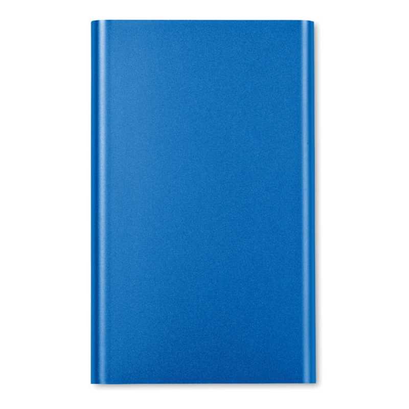 Aluminium power bank with a capacity of 4.000 mAh, polymer battery, input DC 5V/1000mA, and output DC 5V/1000mA. Including power button LED light indicators and a standard USB and USB-C port. Cable included. USB-A/USB-C available only in colors 001 + 008.