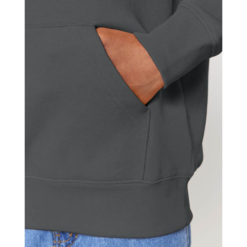 Mikina s kapucňou a česanou podšívkou. Kapucňa z dvojvrstvového materiálu so širokou šnúrkou. Vonkajšie vrecko vpredu, 2x2 rebrovanie na okraji rukáva a spodnom leme. Moderný strih. Materiál: 80% organická bavlna 20% recyklovaný polyester. Gramáž: 280 g/m2. Certifikáty: GOTS, Fairtrade Cotton, Nordic Swan Ecolabel, Oeko-Tex