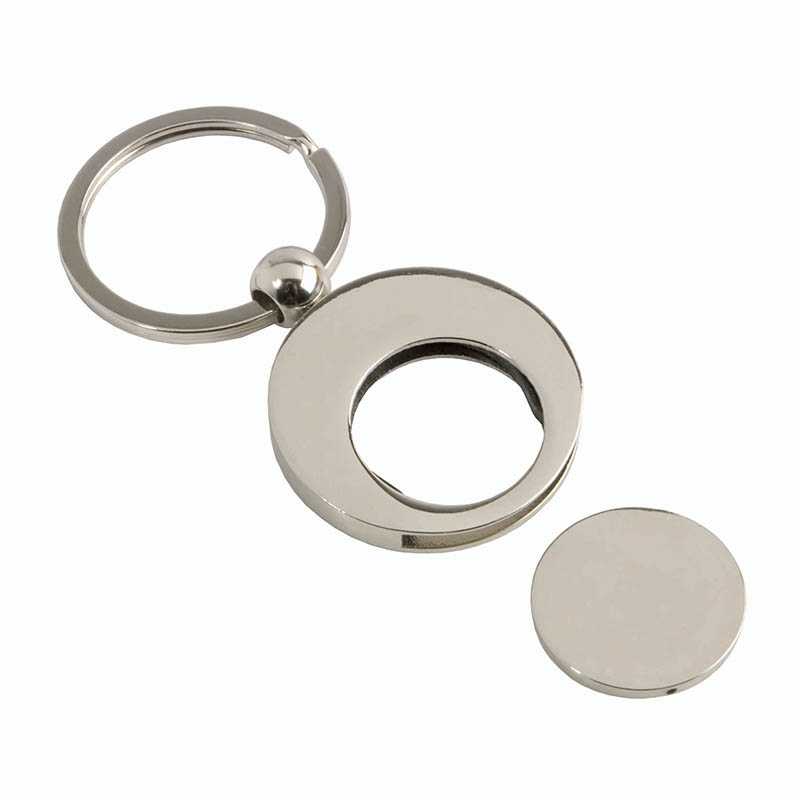 Metal key ring with shopping trolley token in a black box