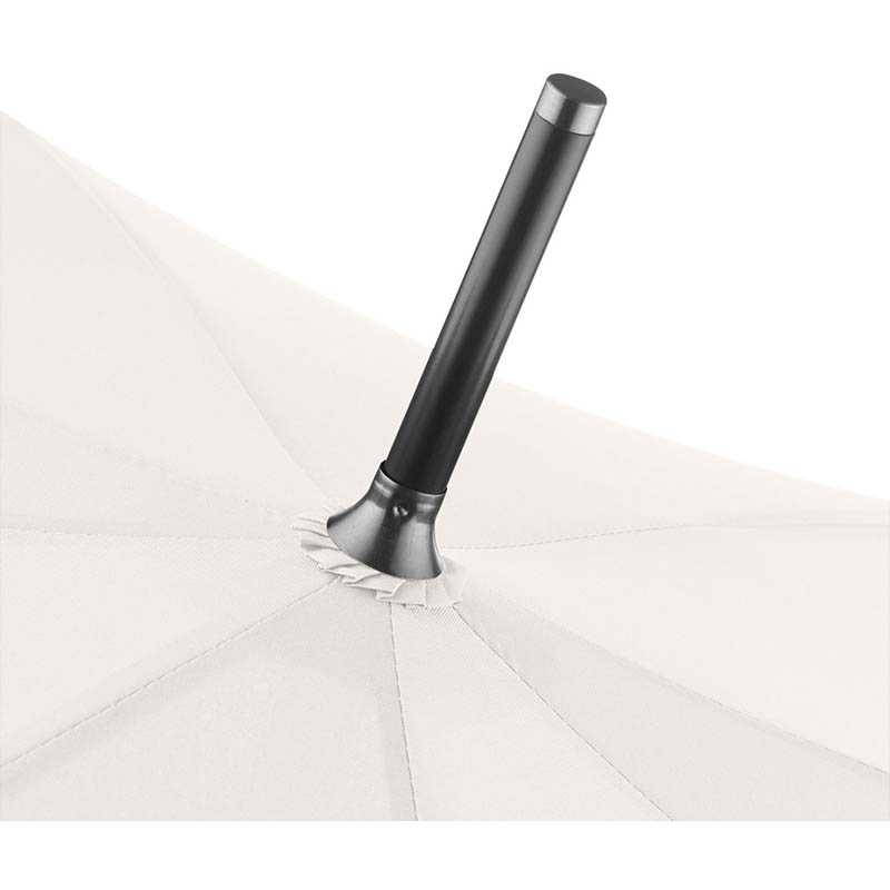 Convenient automatic function for quick opening, high-quality windproof system for maximum frame flexibility in stormy conditions, flexible fibreglass ribs, sturdy steel shaft with higher corrosion protection due to galvanisation, water and dirt repellent cover properties through original Teflon™ fabric protector, Soft-Touch handle and top