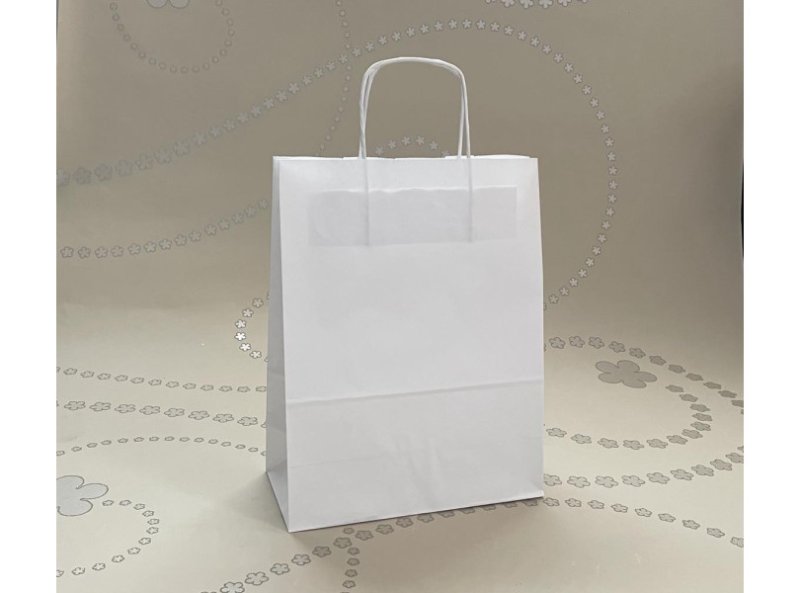 Rozmer: 36x12x41 cm ; Materiál: 100 gr. biely ; Uško: stáčané papierové biele ; Balenie: 250ks ; Minimálny odber: 10ks