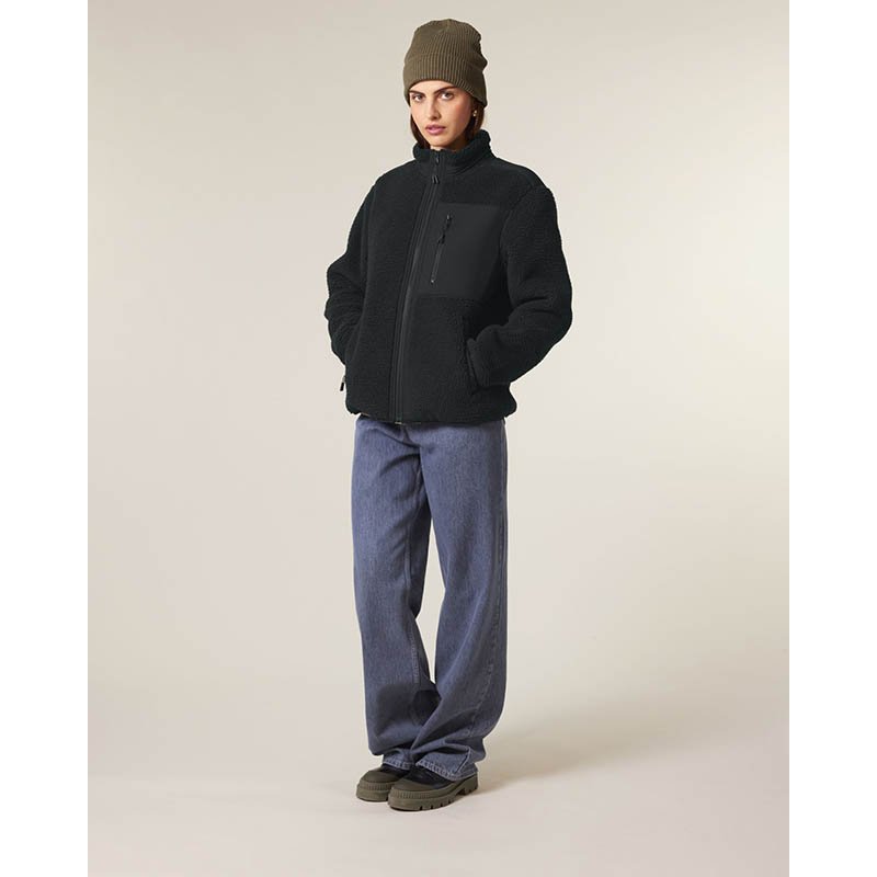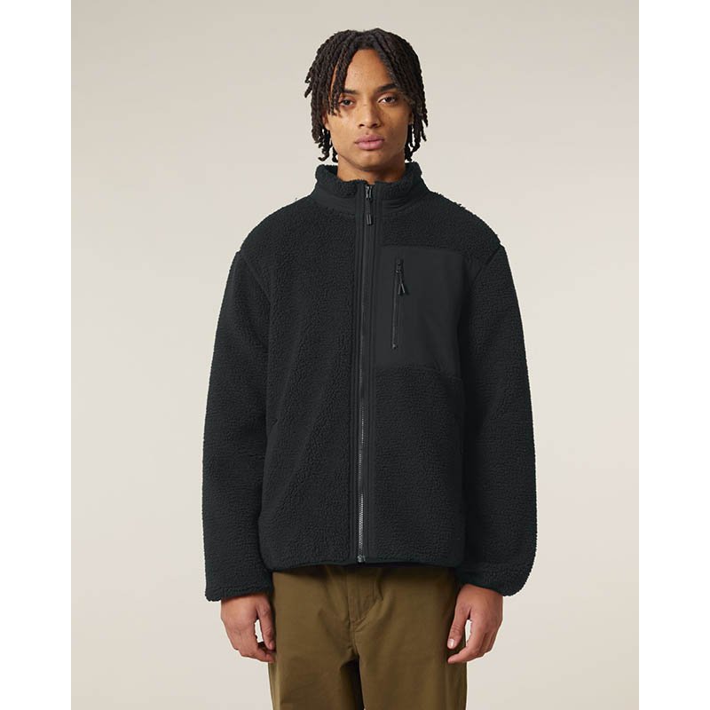 NOVINKA 2025. Set in sleeves Elastic recycled binding at cuffs and hem Inside back neck recycled binding loop and back neck tape Plastic Vislon zipper with metal puller and cord ending Fully bonded inside Polar fleece layer and Anti piling finish Front s