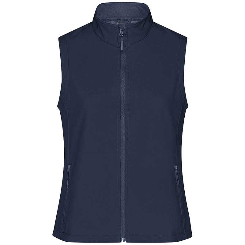 Stylová dámská softshellová vesta James & Nicholson..Vnější materiál: 90% polyester, 10% elastan.Větru a vodě odolná vrstva 3 funkční textilie s PU membránou (2.000 mm vodního sloupce) .Prodyšná (2.000 g / m2 / 24 h) .Měkká, sportovní pružná textilie .2 b