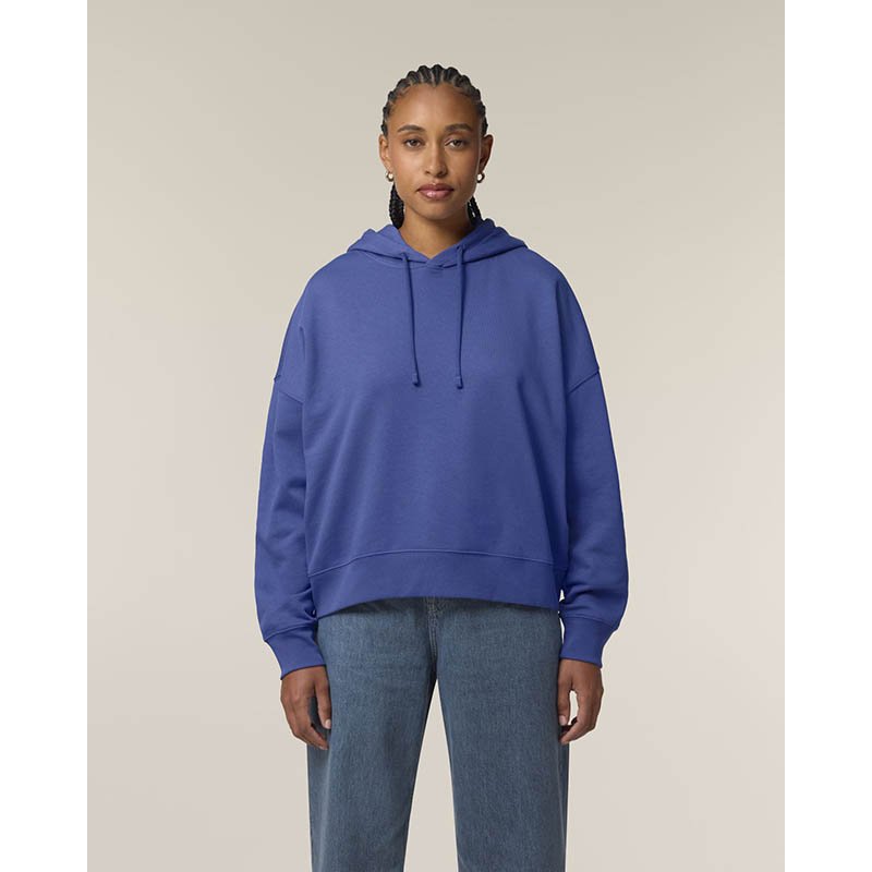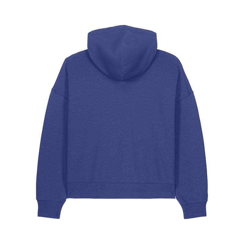 NOVINKA 2025. Set-in sleeves Dropped shoulders Double layered hood in self fabric Flat drawcord in matching body colour Embroidered eyelet 1X1 ribs at sleeves cuffs and bottom hem 2 needles topstitches on all seams Inside gros grain back neck tape Self fa