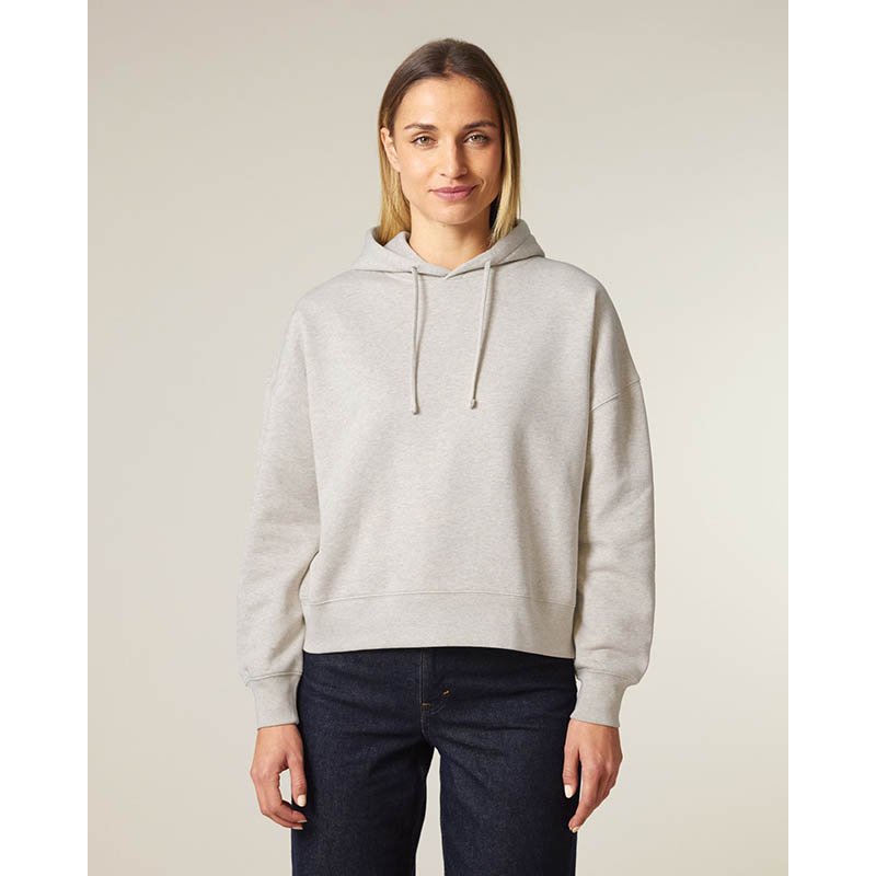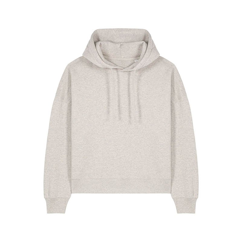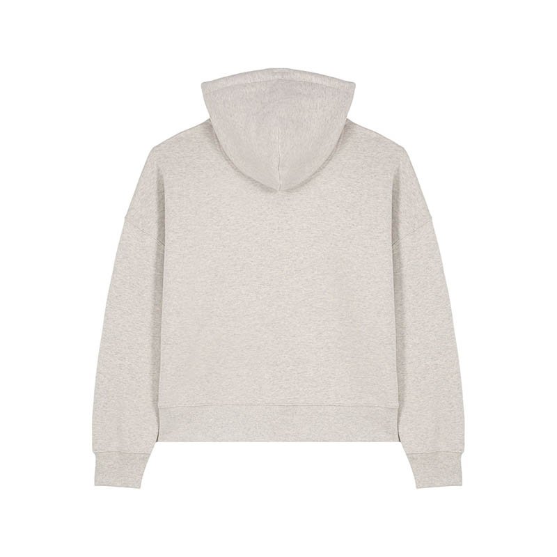 NOVINKA 2025. Set-in sleeves Dropped shoulders Double layered hood in self fabric Flat drawcord in matching body colour Embroidered eyelet 1X1 ribs at sleeves cuffs and bottom hem 2 needles topstitches on all seams Inside gros grain back neck tape Self fa
