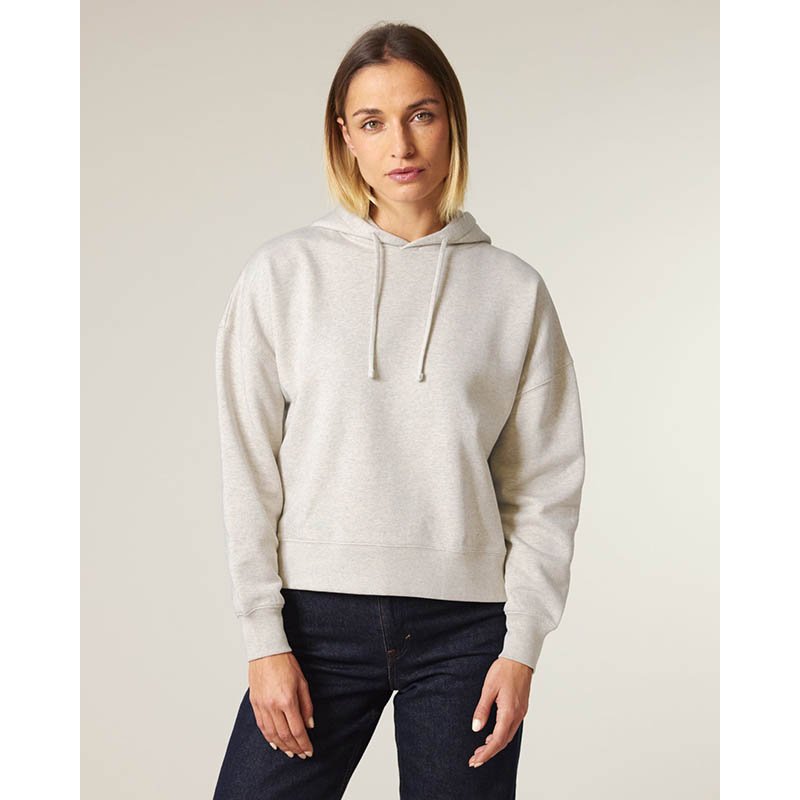Dámská mikina James & Nicholson s kapucí, která zachovává tvar.Mikina je vyrobená z 80% bavlny a 20% polyesteru..Dvojité prošití pro dlouhou životnost .Lemovaná kapuce se stahovací šňůrkou .Manžety, pas s elastanem.Klokaní kapsa .Hmotnost: 320 g / m2.Bale
