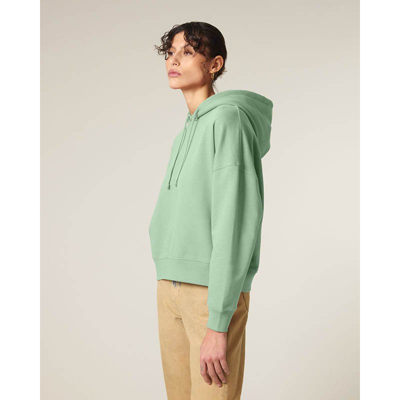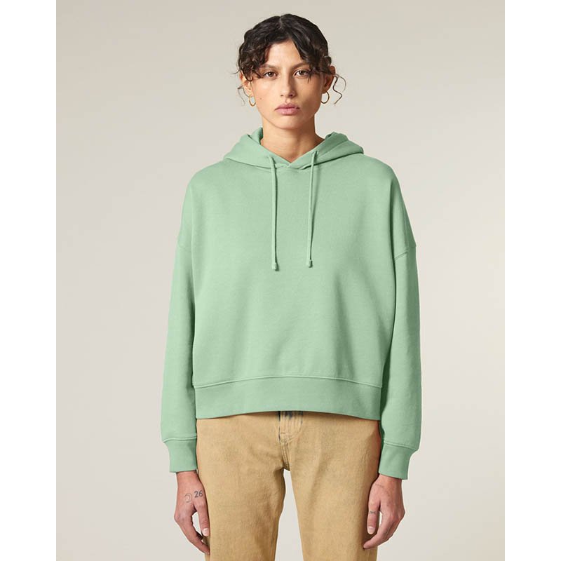 Dámská mikina James & Nicholson s kapucí, která zachovává tvar.Mikina je vyrobená z 80% bavlny a 20% polyesteru..Dvojité prošití pro dlouhou životnost .Lemovaná kapuce se stahovací šňůrkou .Manžety, pas s elastanem.Klokaní kapsa .Hmotnost: 320 g / m2.Bale