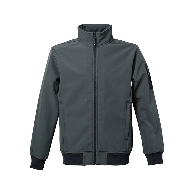 95 % polyester/5 % elastan.Softshellová trojvrstvová lepená tkanina.3 000 g/m2/24 h priedušnosť a 8 000 mm vodoodolnosť.Priedušná stredná vrstva a vnútorná termovrstva z mikroflísu.Vpredu na zips.2 bočné vrecká na zips.1 vrecko na ľavom rukáve na zips.