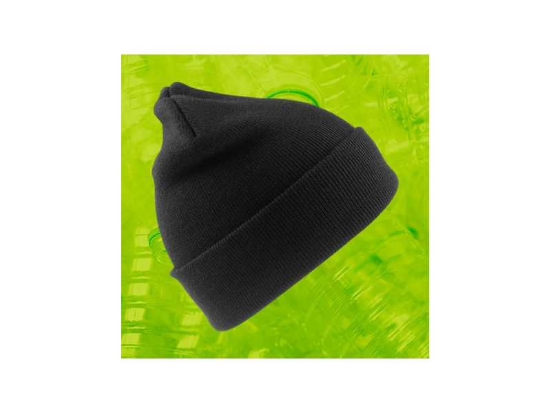 Obsahuje nejméně 50 % recyklovaného polyesteru. Dvojitá vrstva úpletu. Dvoubarevná bambulka. Manžetový design pro optimální dekoraci. Odtrhávací štítek