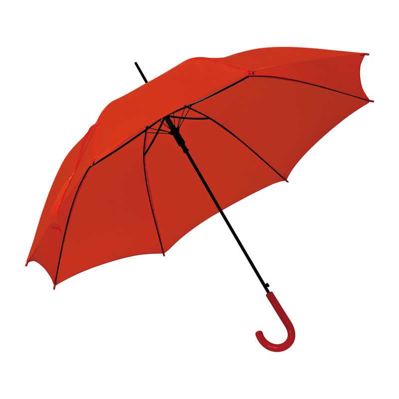 Dáždnik s automatickým otváraním a s plastovým držadlom v rôznych odtieňoch a dizajnových farbách.