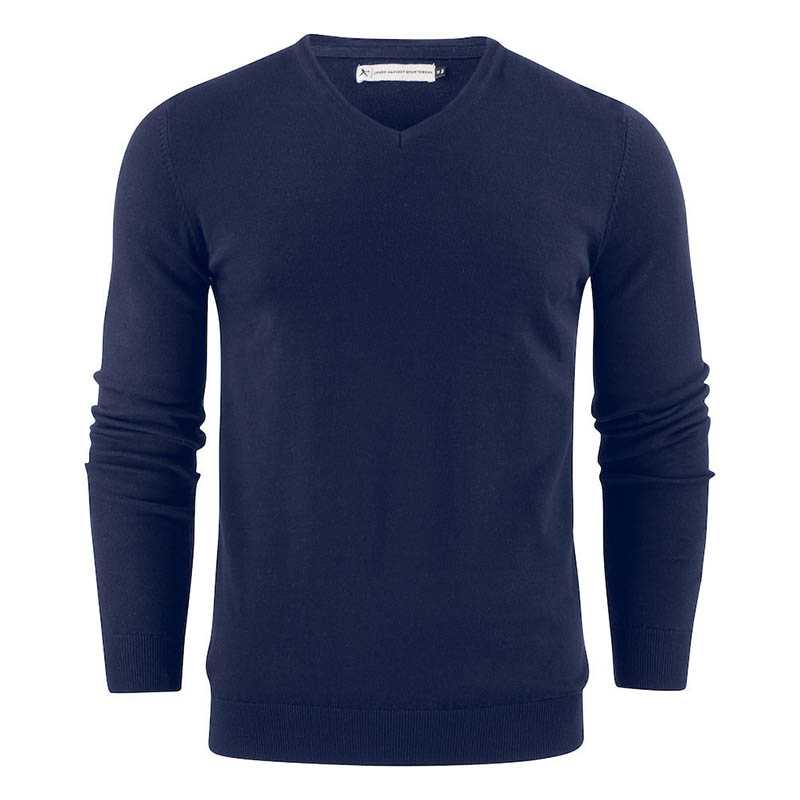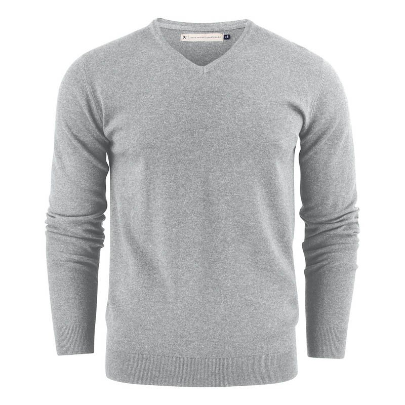 V-neck knitted sweater, 1 x 1 rib at the bottom and sleeves. Double-fold smooth edge at the neck. // 100% COTTON // 140 GREY, 609 FADED NAVY, 600 NAVY, 909 FADED BLACK, 900 BLACK