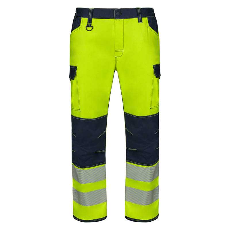 Product Fabrics: 65% polyester, 35% cotton Description: Waistpant in easy care polyester/cotton which keeps color and shape. Waistpants with side pockets and back pockets with flap and Velcro closure. Folding rule pocket and pocket for tools with knife button. Two hammer loops, one on each side. Reinforcement in the folding rule pocket and over knees. Reflective piping on the outside legs for increased visibility. Internal pockets for knee protectors, adjustable in two height levels. Size C42-C64 can be extended by 5 cm.