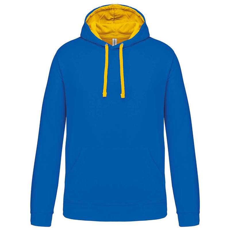 Hoodie with Kangaroo Pocket.Made of durable and long-lasting plush cotton-polyester blend fabric with an inner brushed for optimal thermal insulation and extra comfort.Elasticated ribbed cuffs and waistband for comfortably fitting.Double layer hood with regulable drawstring for a better adjustment and a comfortable fit.A large central kangaroo pocket for convenient storage. Suitable marking methods: screen printing, embroidery, transfer printing, badges, shields. Ideal as promotional clothing, daily use, school uniform, merchandising, workwear, for a personalised gift and more.