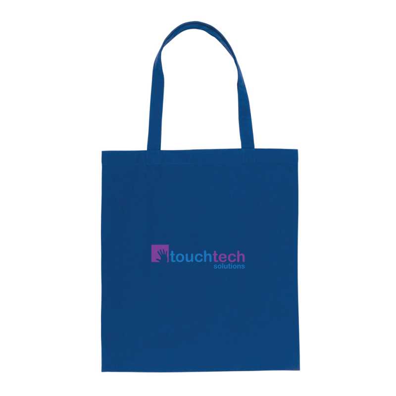 NOVINKA 2025. Oeko-Tex® cotton (220gsm) shopping bag with 10 cm gusset. Dyed cotton. Maximum carrying weight: approx. 8 kg. Includes Oeko-Tex® label.